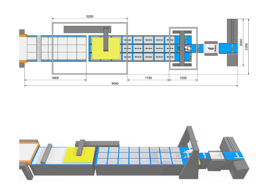 It consists of 3 independent belts and 3 independent drives with asynchronous motor-reducer. Frequencycontrolled speed. It has sensors for precise positioning of the crust during bending. At the end of the system,