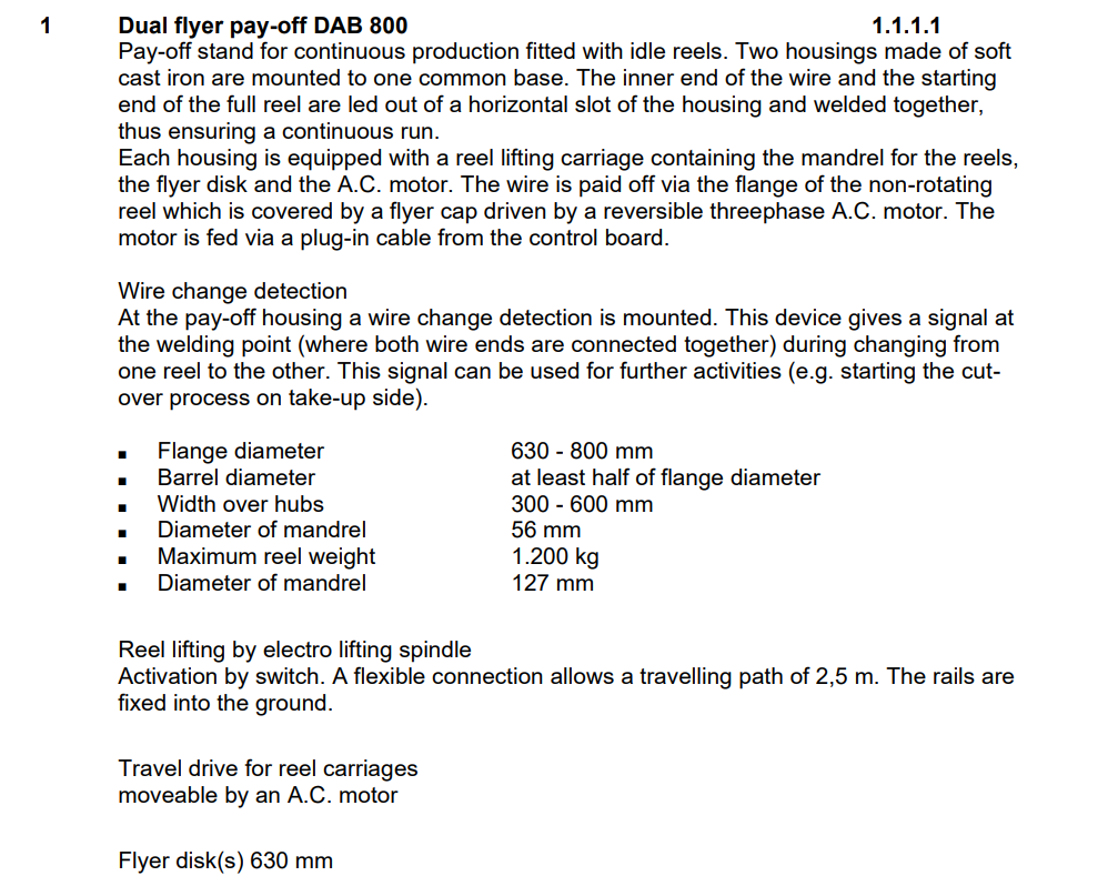the flyer disk and the A.C. motor. The wire is paid off via the flange of the non-rotating