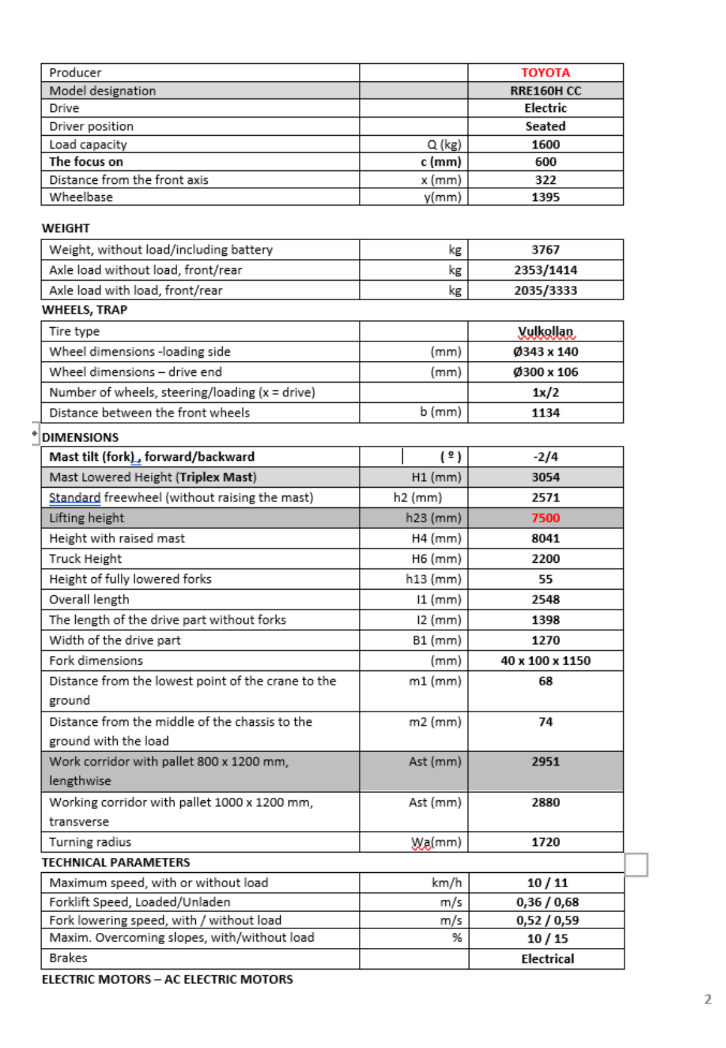 Toyota – Electric forklift – RRE160H CC