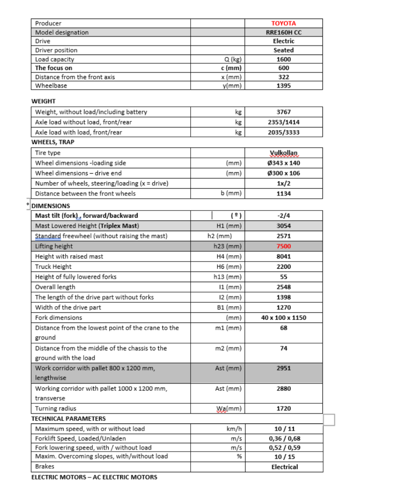 Toyota – Electric forklift – SPE160